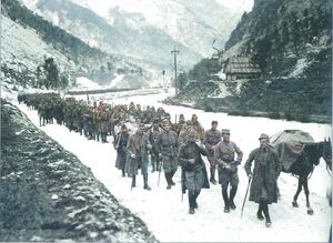 Ostala tri bataljona su 14. oktobra 1915. godine prebačena na jugozapadni front sa ruskog bojišta. 27. oktobra bataljoni su bili u Šempasu u sastavu 6. pješadijske divizije pod komandom feldmaršala Schonburga, i to dva bataljona u 12. pješačkoj brigadi (pukovnik Müller) i jedan bataljon u 16. pješačkoj brigadi (pukovnik Testa).
