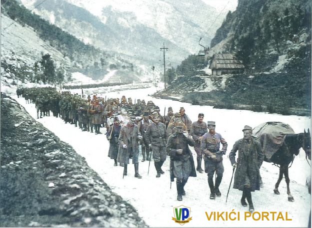 Pod komandom kralja Nikole I Petrovića Njegoša, crnogorska vojska, kao srpski saveznik, na samom početku rata okupirala je 1750m visok Lovćen, s kojeg je ugrozila austrougarsku vojnu luku u Boki Kotorskoj. Međutim, kada je srpska vojska pred kraj 1915. izgubila rat, nad Crnom Gorom su se nadvili crni oblaci. Poražena srpska vojska, predvođena bolesnim kraljem Petrom I Karađorđevićem, povlačila se sa sjevera preko albanskih i crnogorskih planina. Napredujuća austrougarska vojska pod komandom generala Kovessa napala je Crnu Goru 7. decembra i nakon dvodnevne teške opsade, Lovćen je pao 10. januara. Kada je 13. januara pala prijestonica Cetinje, rat u Crnoj Gori je bio završen. 25. januara preostale jedinice su se predale, a kralj je preko Rima pobjegao u Francusku. U bici na Lovćenu učestvovao je i 5. bataljon 2. bosansko-hercegovačkog puka pod komandom majora Starkla. Nakon pada Crne Gore, prebačena je u Južni Tirol, gdje se, kao dio 21. brdske brigade pod komandom general-majora Goigingera, istakla, posebno u planinama iznad doline Puster.
